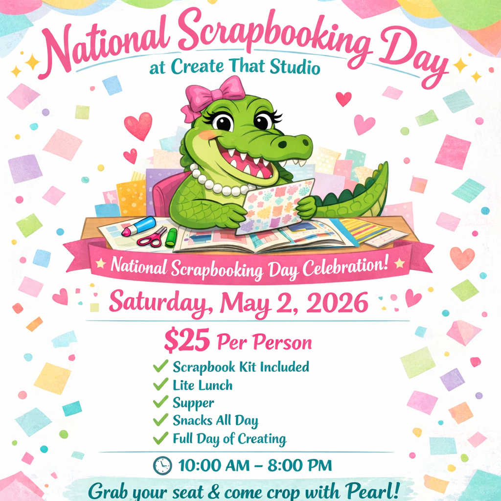 Join us at Create That Studio for a day of creating, laughing, eating, and celebrating the hobby we all love.