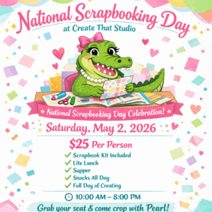 National Scrapbooking Day deserves more than just crafting at home… it deserves a FULL DAY with your scrappy friends. 💗 Join us at Create That Studio for a day of creating, laughing, eating, and celebrating the hobby we all love. For $25 you get a scrapbook kit, lite lunch, supper, snacks, and a full day […]